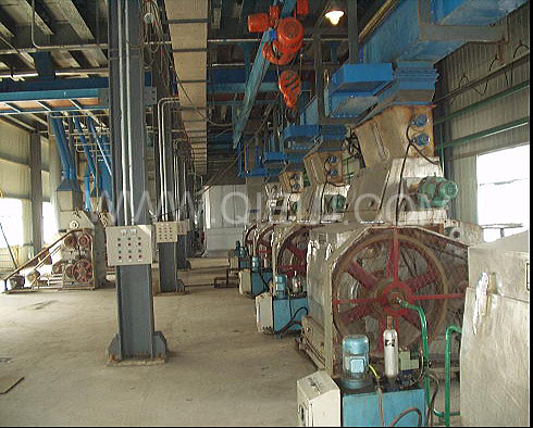 轧胚工序:采用液压紧辊轧胚机,较好的破坏油料细胞组织,以保证轧坯片薄而均匀,有韧性,粉末度小。
