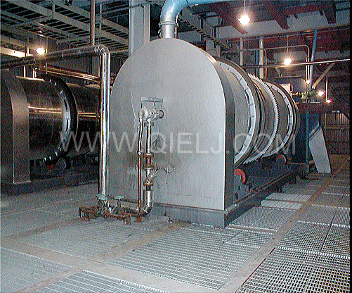 软化工序:采用YRHW系列卧式软化锅,通过进料绞龙进入软化转筒内,随着转筒的转动,物料得到不断的翻动,由于转筒内装有加热列管,列管内通有蒸汽,因此物料在随着转筒不断翻动的同时,将大豆加热到50-70℃,使其充分软化,提高大豆原料的塑性,使轧胚机轧出的胚薄而不碎,从而提高浸出效果。转筒带有进料端高、出料端低的倾角,根据物料的软化情况,通过调速装置调节转筒的转速,可以控制物料在转筒内的软化时间,使物料的软化效果达到理想状态。